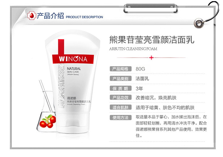 薇諾娜熊果苷瑩亮雪顏80g潔面乳