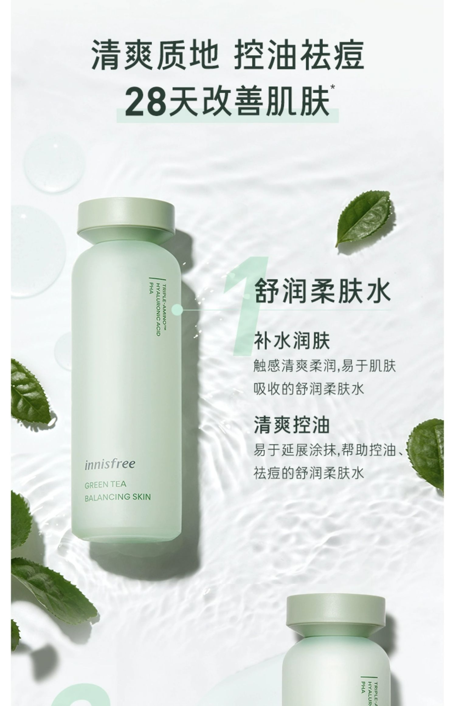 innisfree悅詩風吟水乳套裝綠茶學生護膚品控油祛痘補水保濕正品