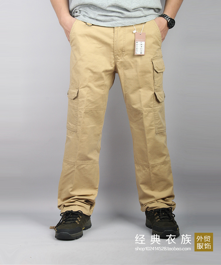 春夏休閑褲棉質寬松直筒工裝褲男長褲加大碼男裝夏季薄款戰術褲子