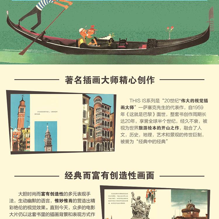 THISIS系列是“20世紀*偉大的視覺插畫大師”—薩塞克先生的代表作,自1959年《這就是巴黎》面世,整套書創作周期長達20年,享譽全球半個世紀,經久不衰,被視為世界旅游繪本的開山之作,融合了人文,歷史,地理,藝術和景觀的傳世巨制,被譽為“經典中的經典”。