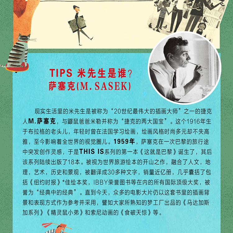 1959年,薩塞克在一次巴黎的旅行途中突發創作靈感,于是THISIS系列的*本《這就是巴黎》誕生了,其后該系列陸續出版了18本。作品一經面世便以其獨特的經典質感和時尚多元的表現手法俘獲了讀者們的心。作者對每個城市細膩深刻的景觀描繪,豐富的人文背景介紹,略帶幽默的文字,讓人愛不釋手。特別是他在文字與視覺的表現中加入了屬于兒童特有的視角和觀點,更使得作品大獲成功。