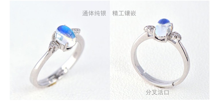月光石戒指女S925純銀天然藍光天使日韓簡約學生情侶求婚尾戒指環