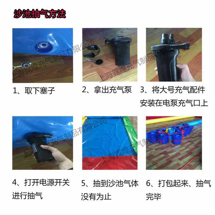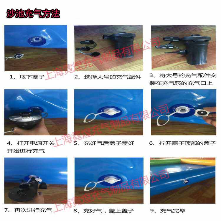 放池子的地方接電源方便,就可以選插電泵,插電泵接上電源對準沙池充氣口充氣,塞上氣塞,充氣泵就可以收起來。