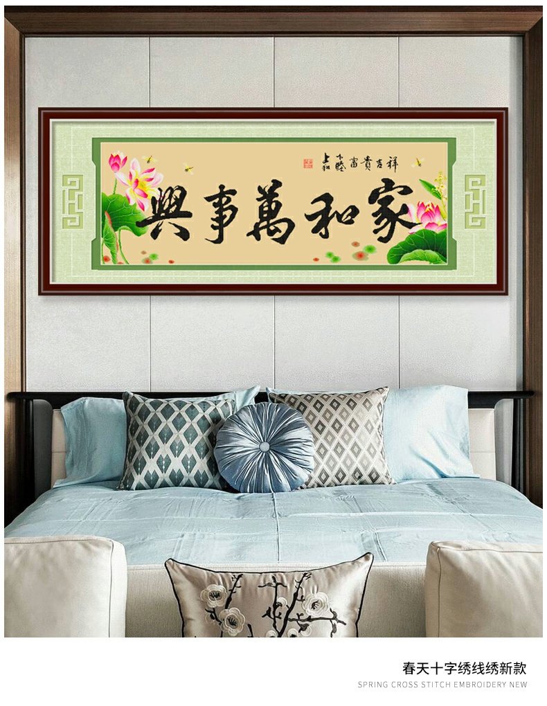 家和萬事興十字繡字畫荷花手工大幅客廳家用2023線繡新款自己繡