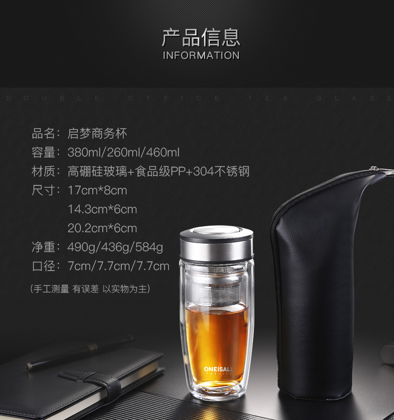 雙層男商務保溫隔熱過濾個人玻璃杯