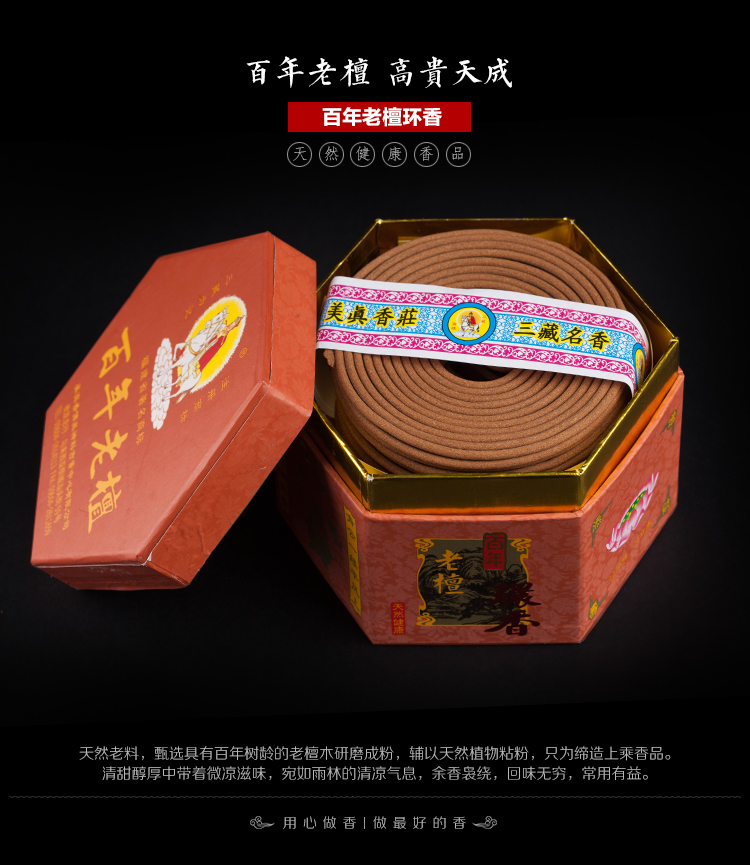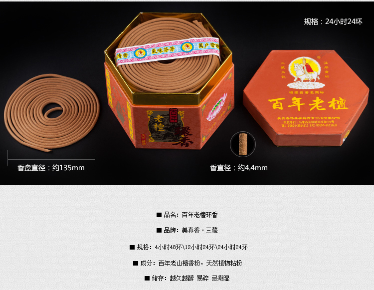 美真香三藏百年老檀香線香4小時盤香竹簽棒香家用室內香薰禮佛香