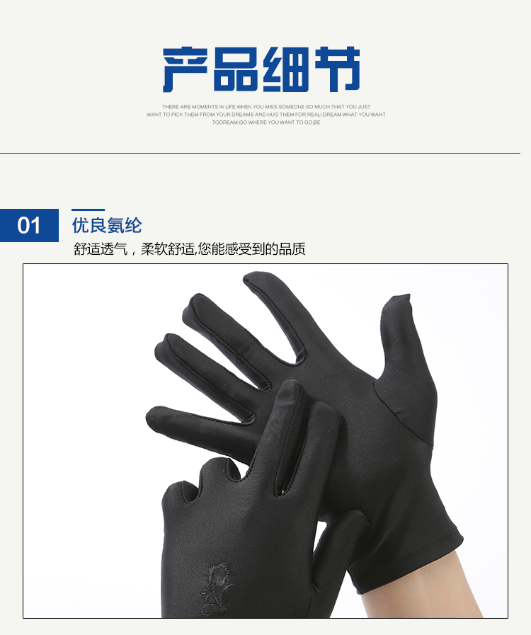 春秋防曬氨綸黑白色禮儀彈力手套