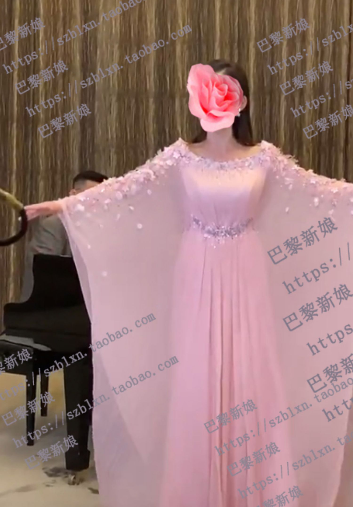 2023新款 肉粉色大水袖花朵音樂會演唱歌唱比賽獨唱演出禮服