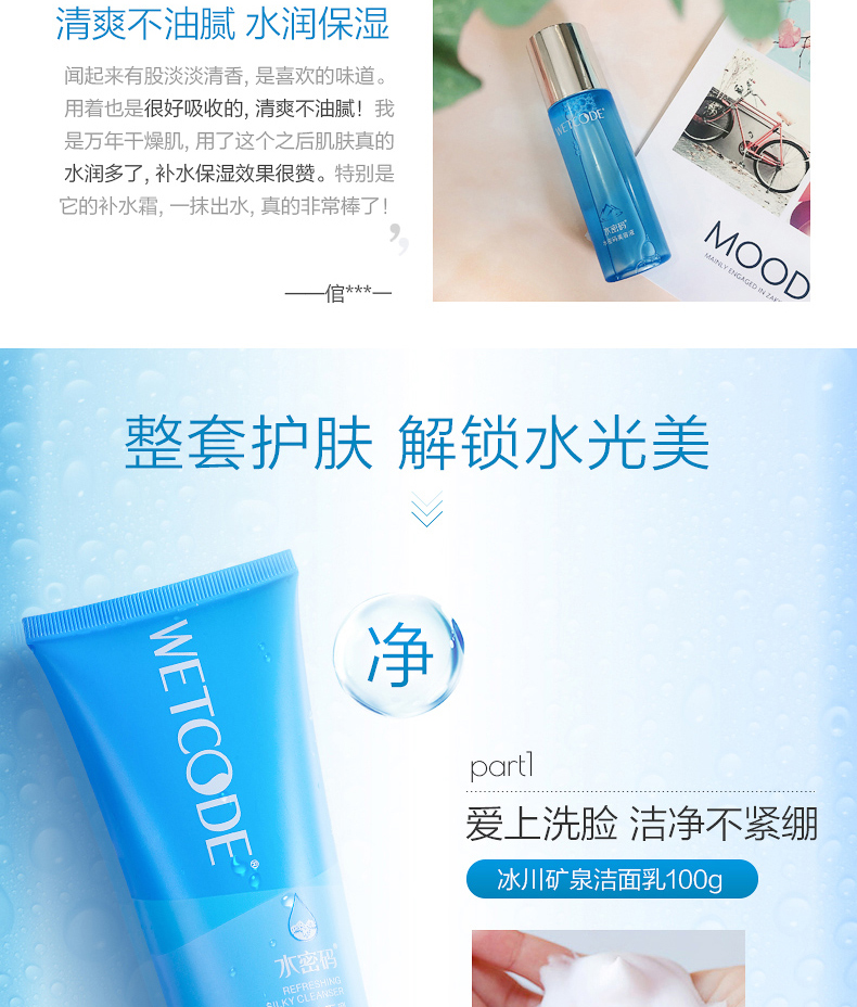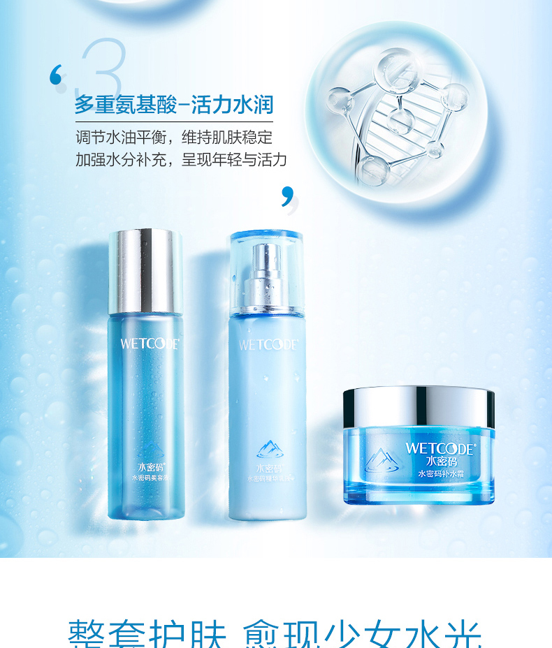 水密碼玻尿酸冰川水乳套裝護膚品正品補水保濕女學生化妝品旗艦店