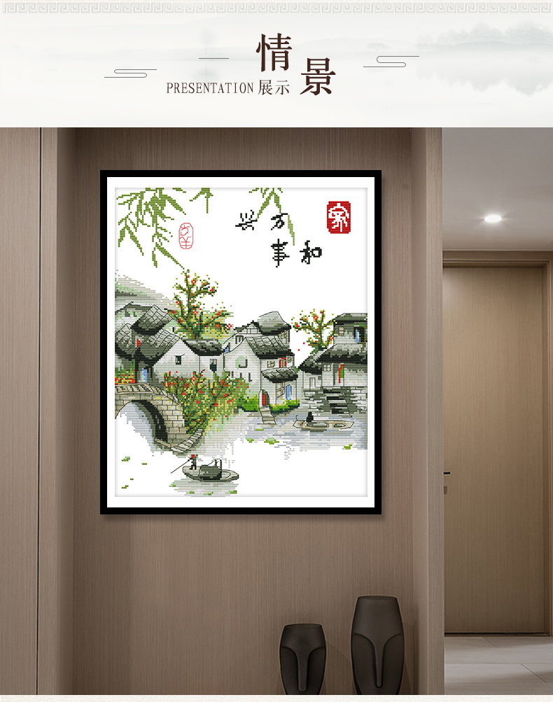 十字繡江南水鄉風景 2023新款繡清新簡約客廳 家和萬事興山水線秀