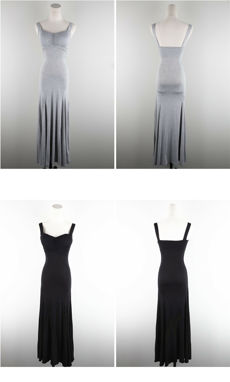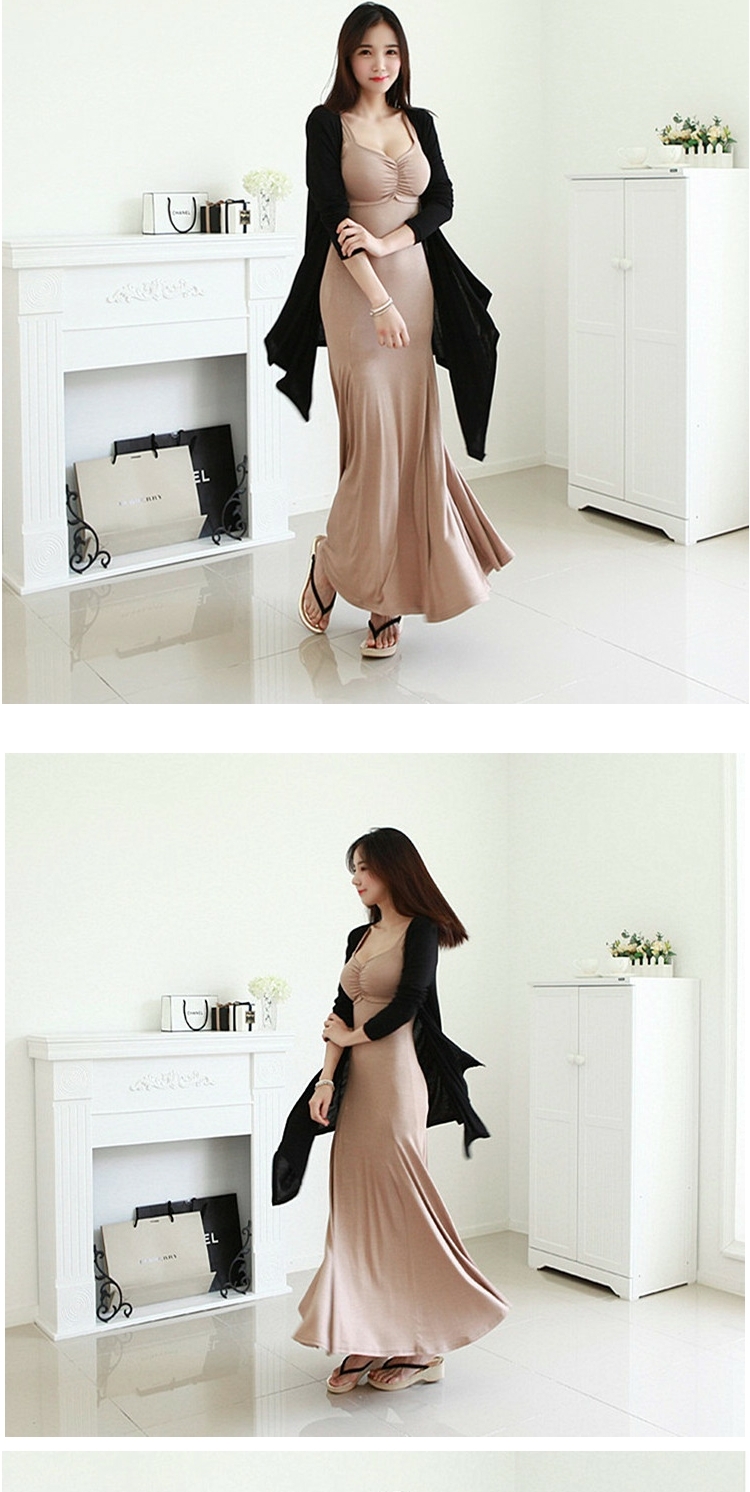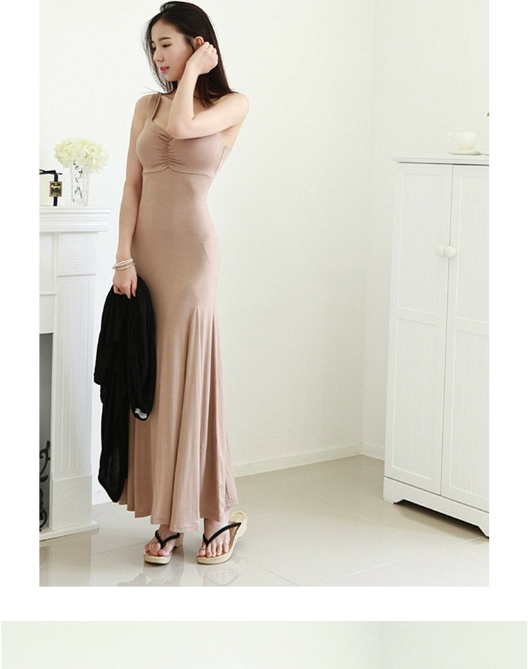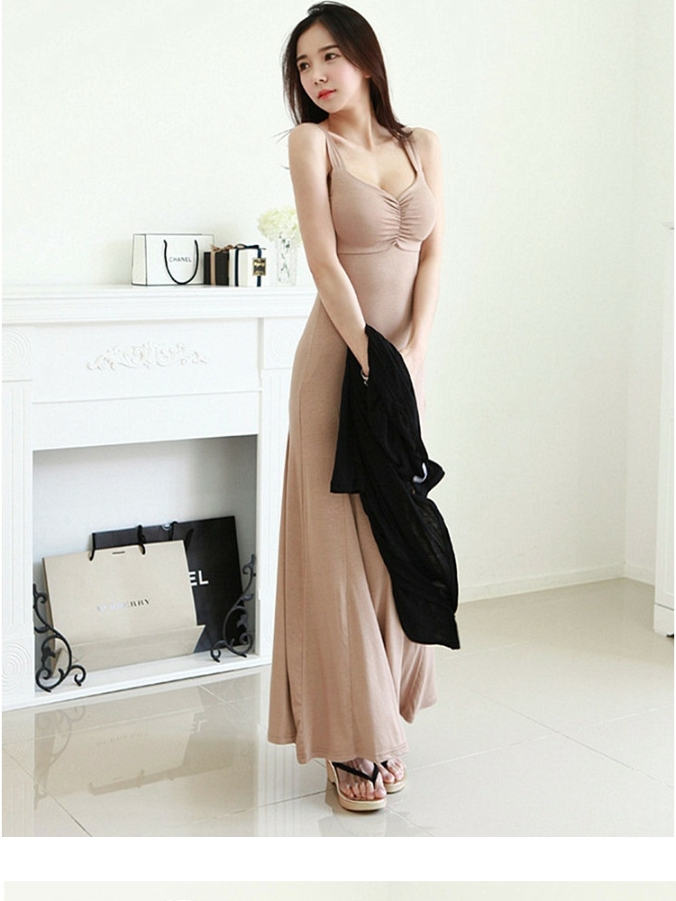 2023夏韓版莫代爾女裝長款連衣裙V領褶皺性感露背吊帶裙大擺長裙
