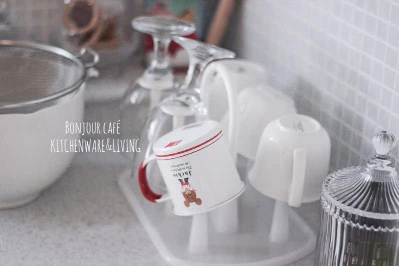 日本進口ASVEL倒置倒放瀝水塑料杯架家用托盤置物架水杯掛架白色