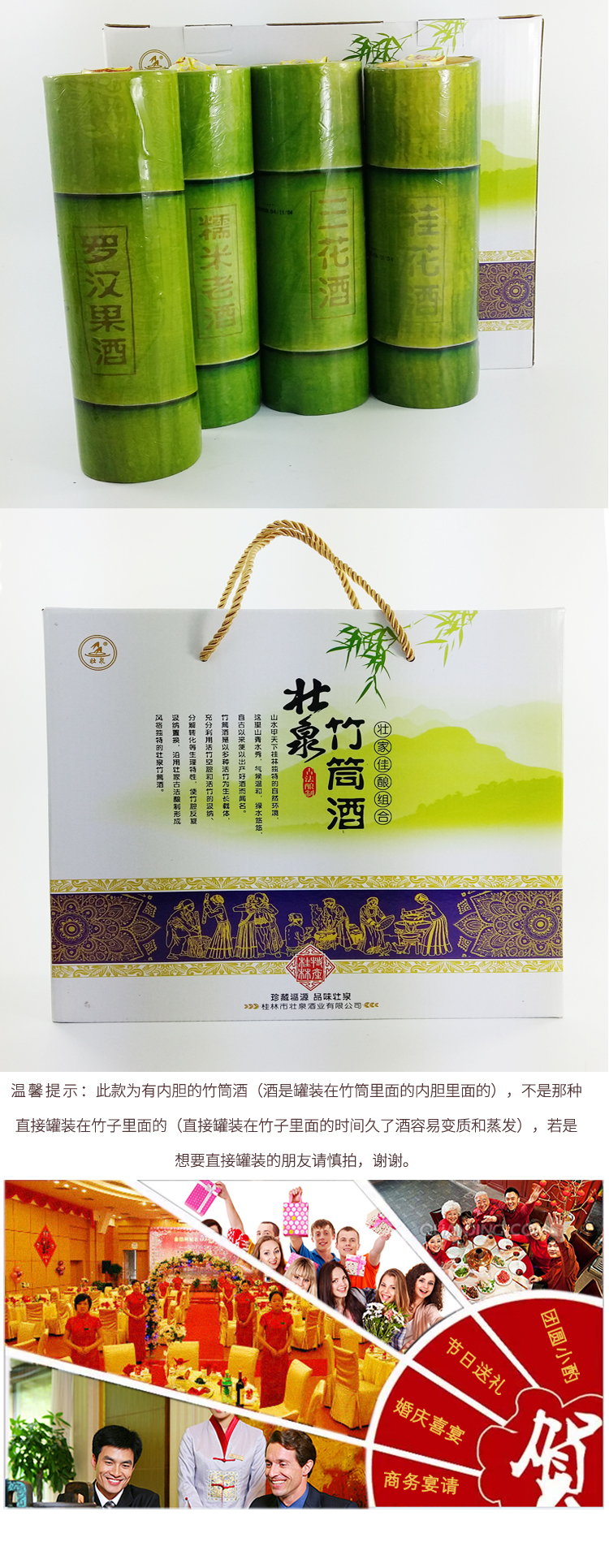廣西壯泉竹筒酒4瓶裝禮盒桂林三花酒桂花酒羅漢果酒糯米老酒組合