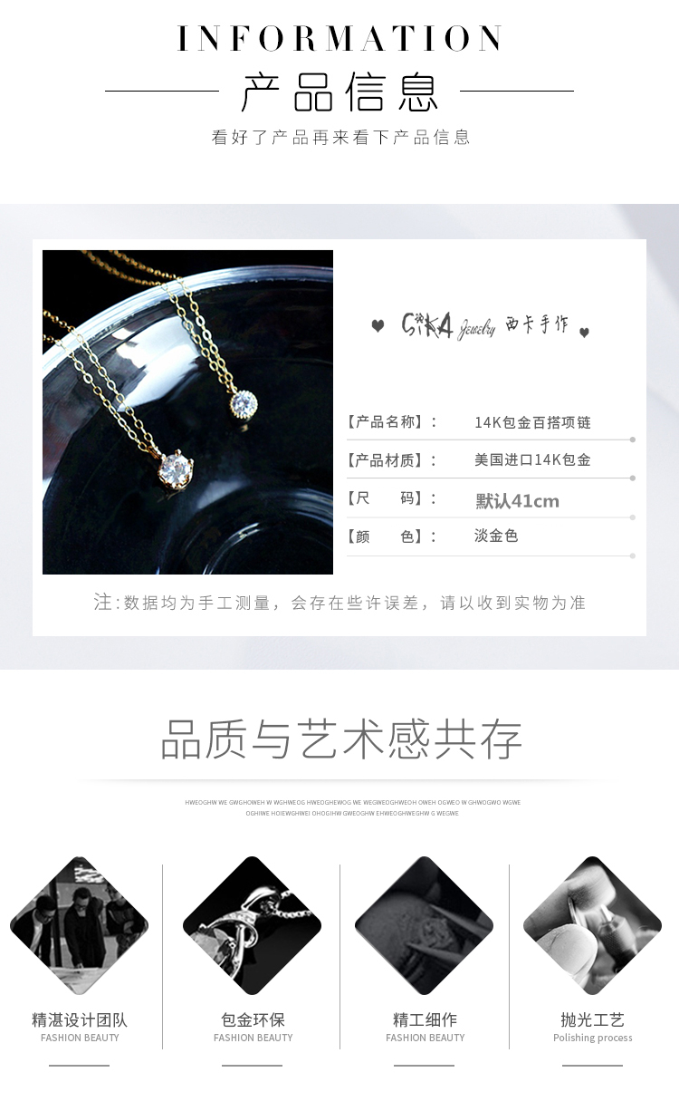 項鏈獨冢采用14k美國進口14k包金鏈
