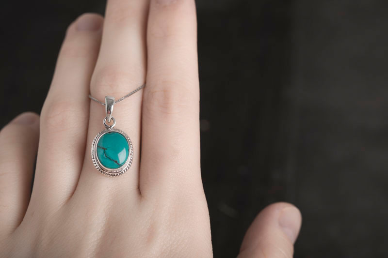 印度尼泊爾手工925銀飾品綠松石吊墜 女男款項墜創意復古民族風