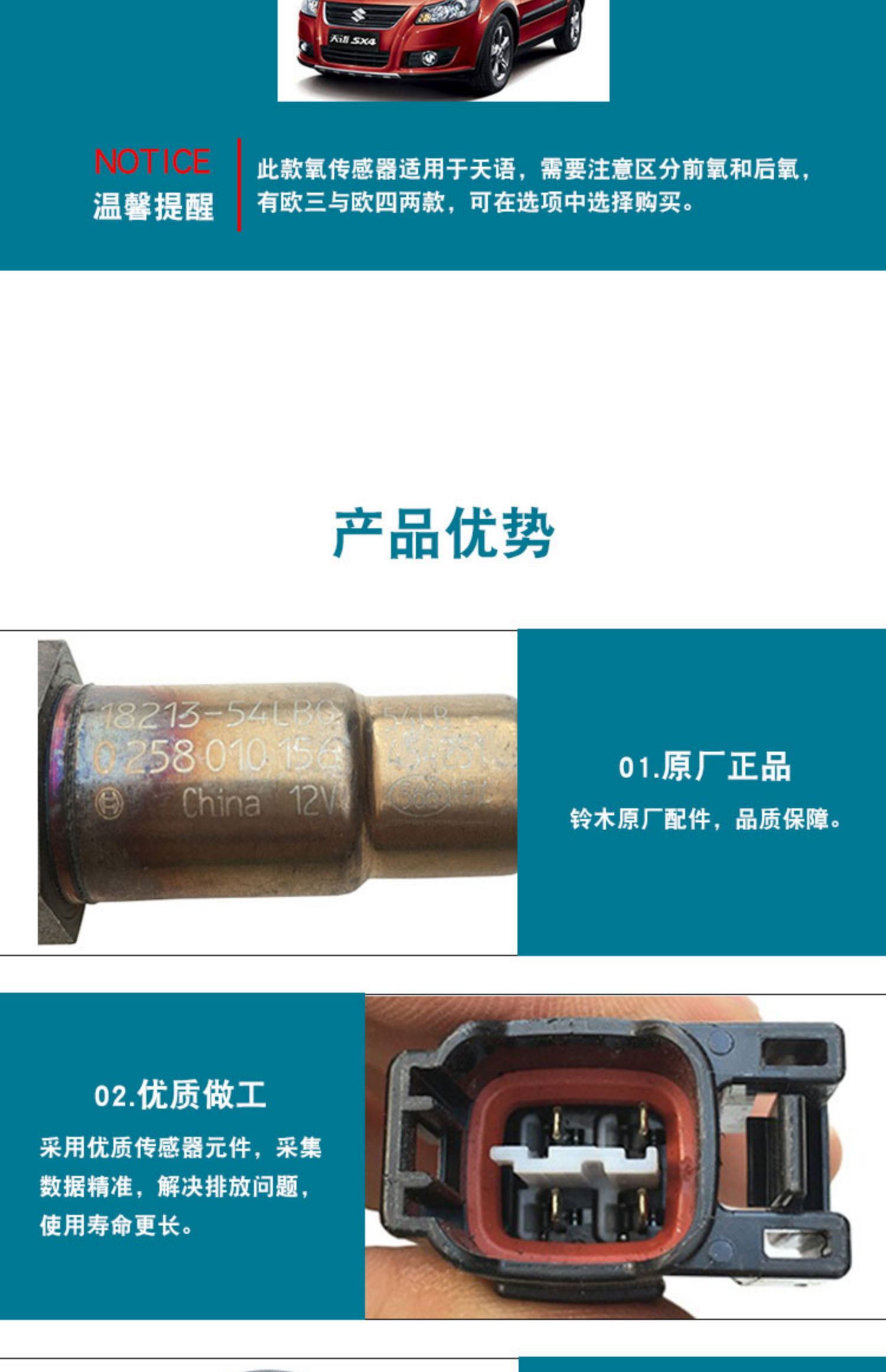 適配長安鈴木雨燕新奧拓天語尚悅銳騎酷銳前后氧傳感器總成原廠