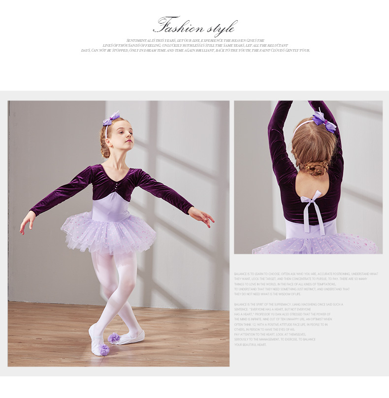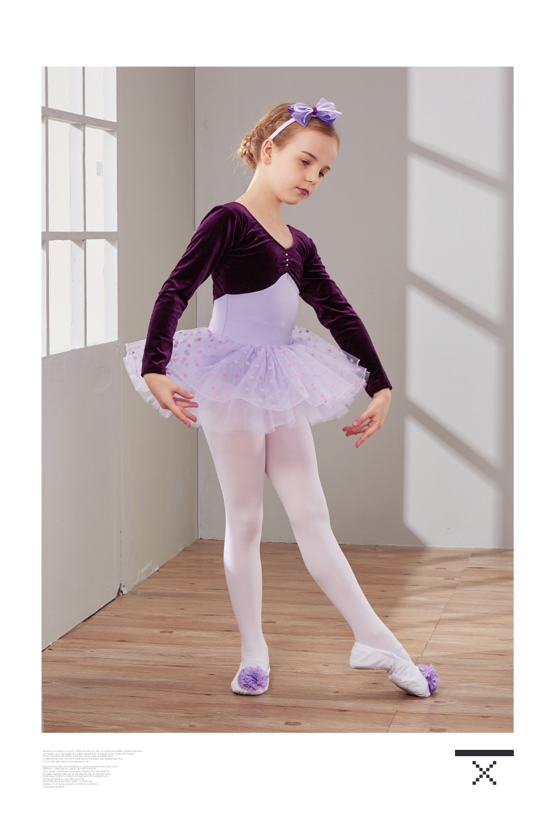 舞之戀秋冬季長袖絲絨寶寶芭蕾舞裙