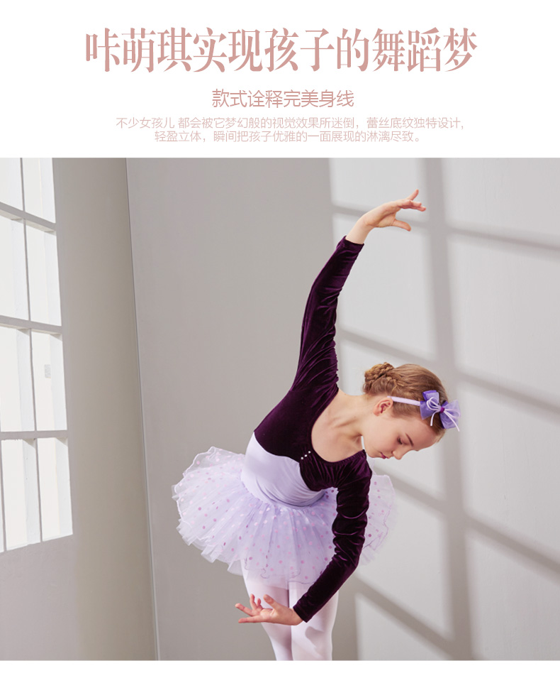 咔萌琪春秋季兒童舞蹈服裝女童長袖練功服少兒芭蕾舞裙體操考級服