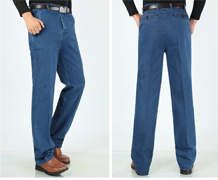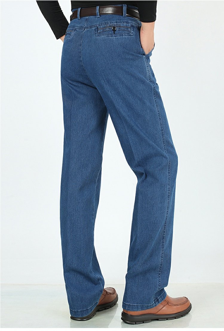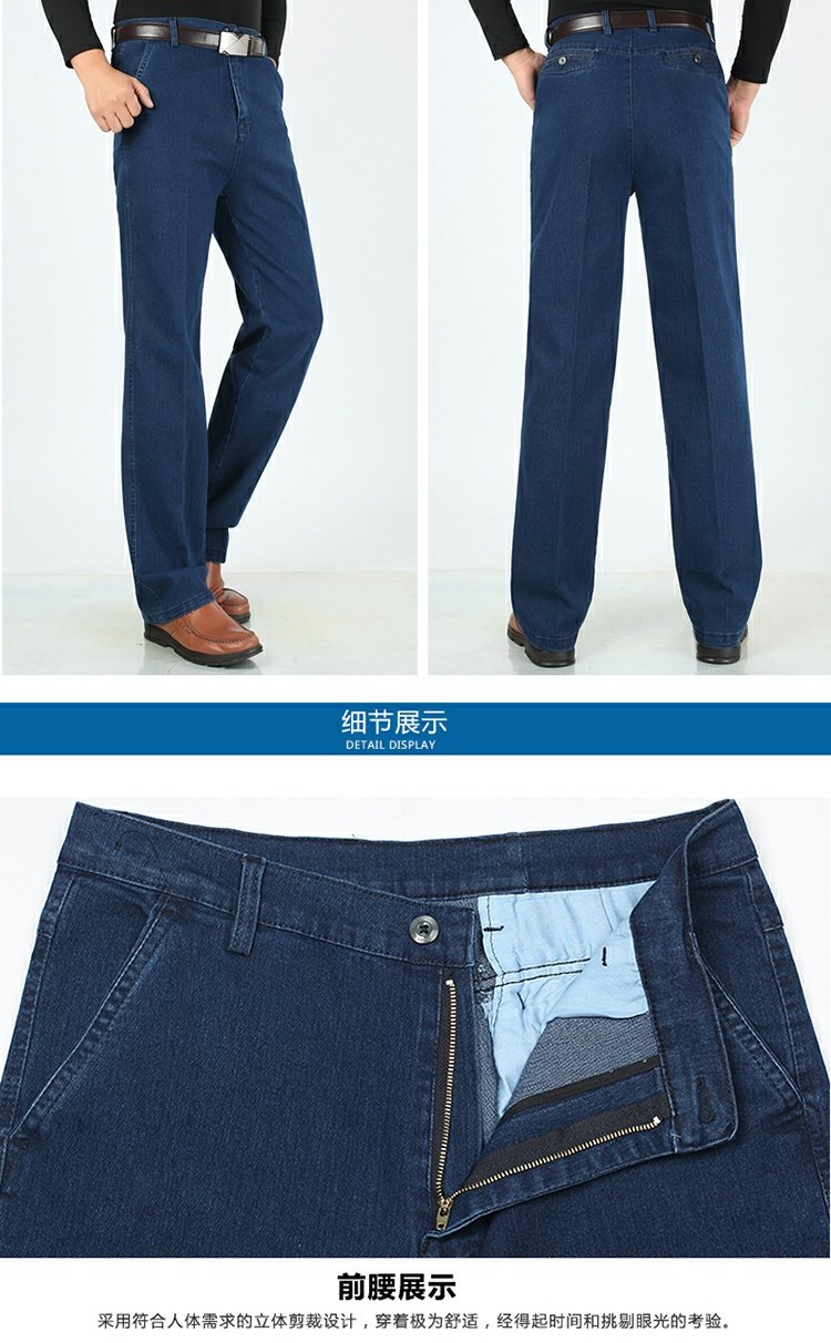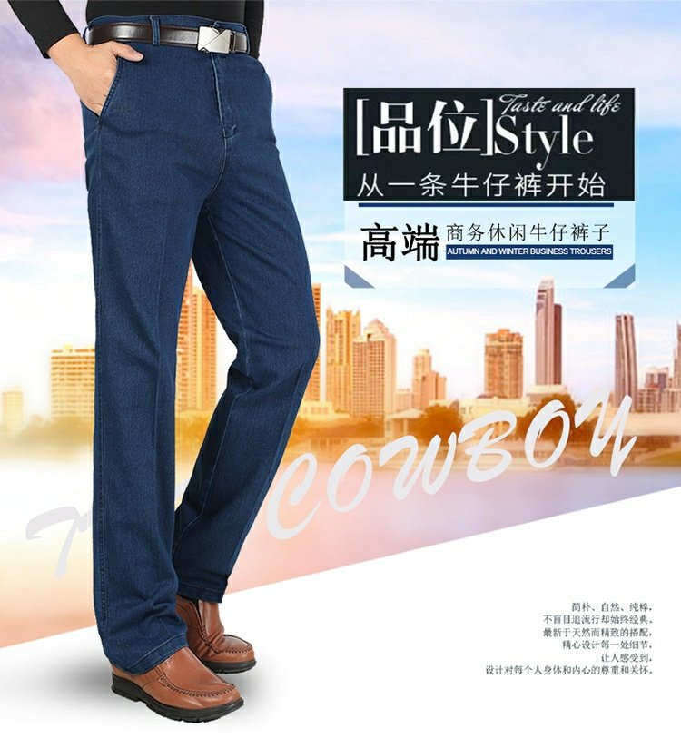 秋冬厚款花花公子男士彈力牛仔褲中老年高腰寬松直筒大碼牛仔褲子