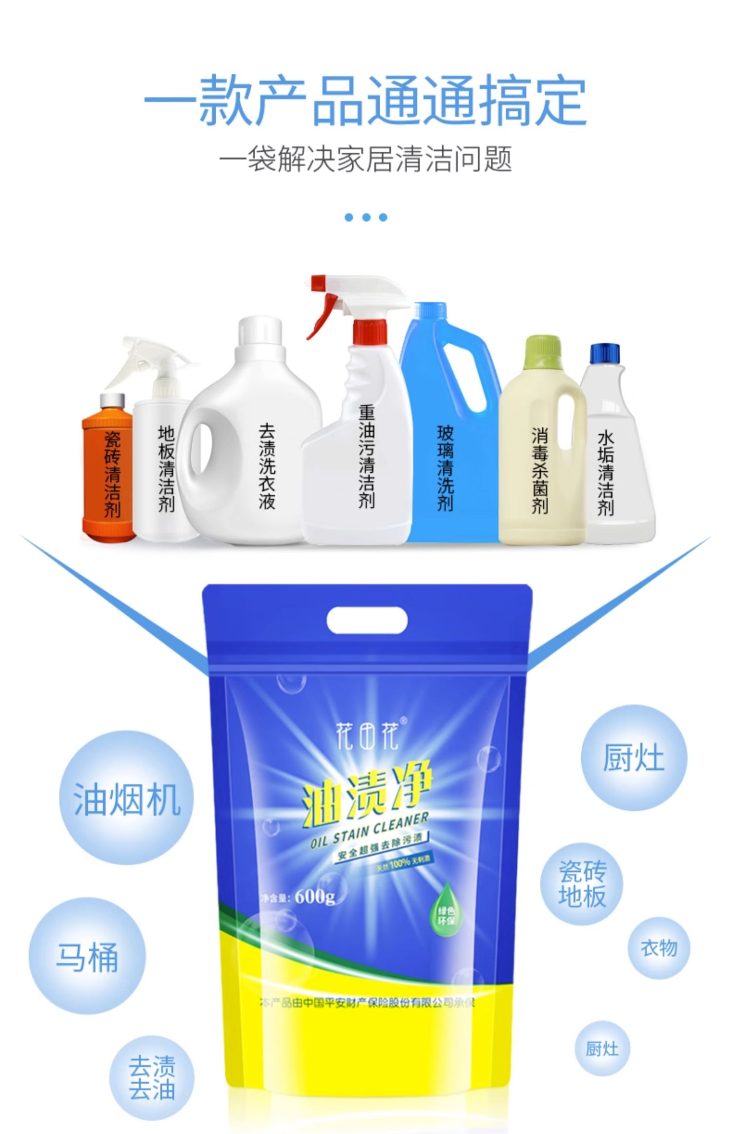 油漬凈袋裝廚房清潔劑抽油煙機清洗劑去油污強力除垢粉瓷磚凈600g