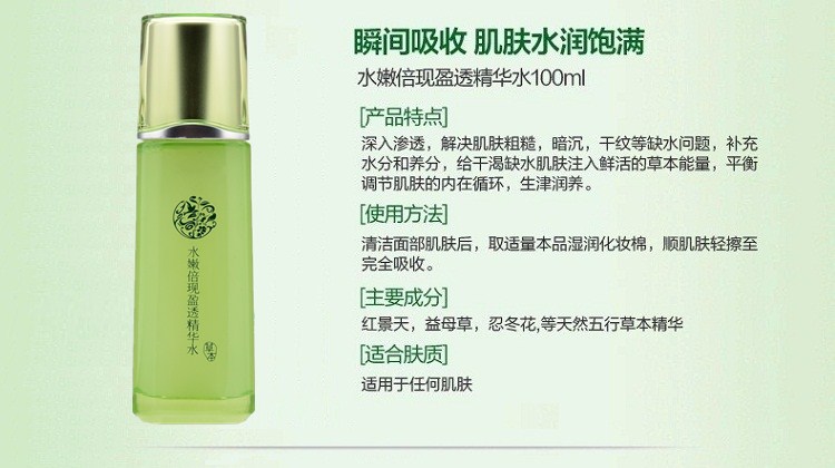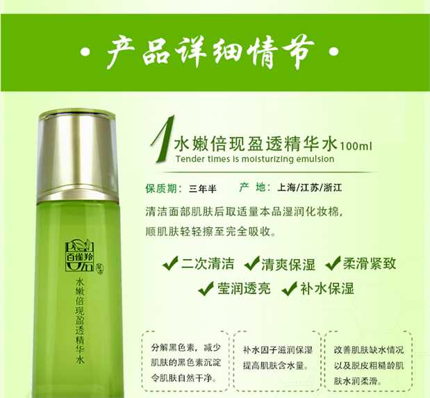 正品百雀羚水嫩倍現盈透補水爽膚水
