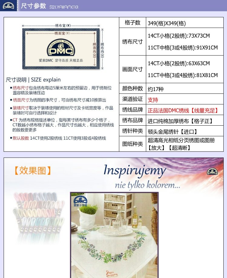 DMC十字繡套件 客廳 臥室 精準印花 藍色果醬桌布