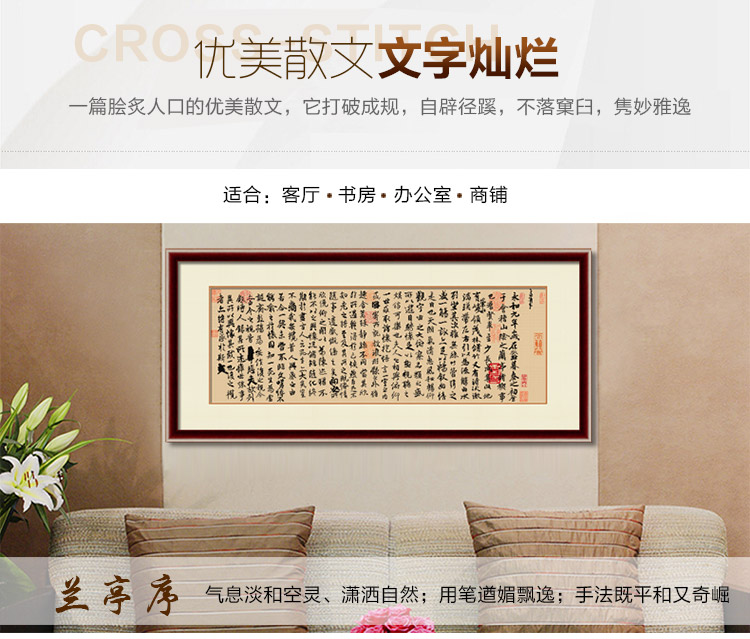十字繡客廳蘭亭序字畫經典書法書房辦公室大幅中國風2023新款線繡
