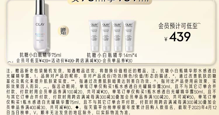 【入會領券】OLAY玉蘭油抗糖小白瓶面部精華改善暗沉美白提亮去黃