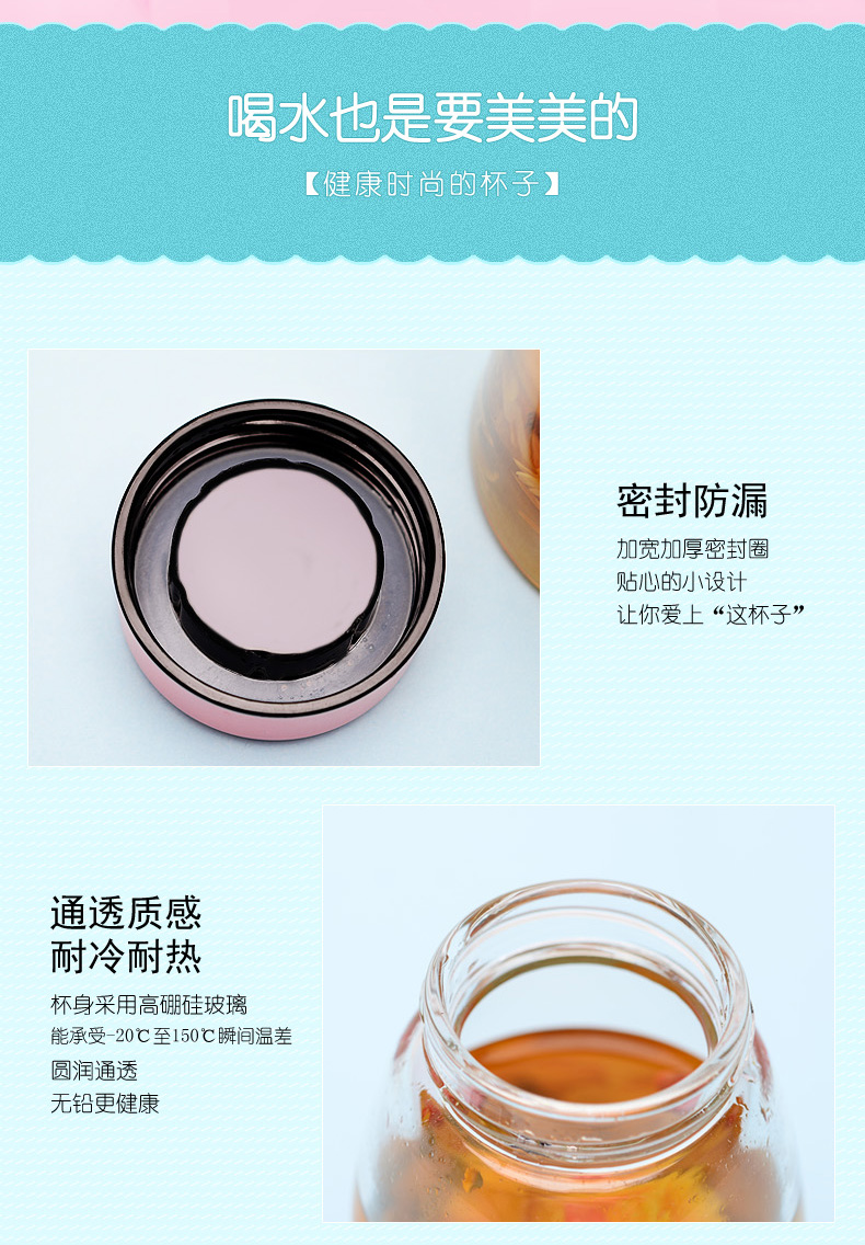 簡趣大容量便攜女學生韓版泡玻璃杯