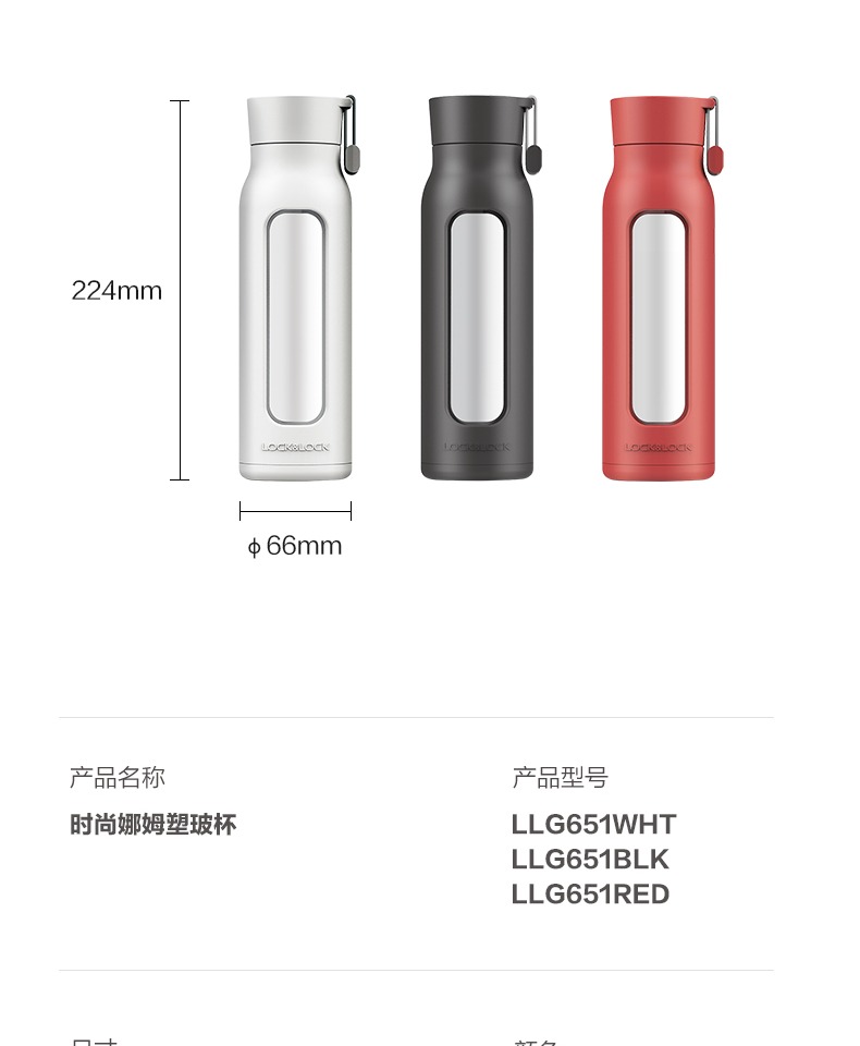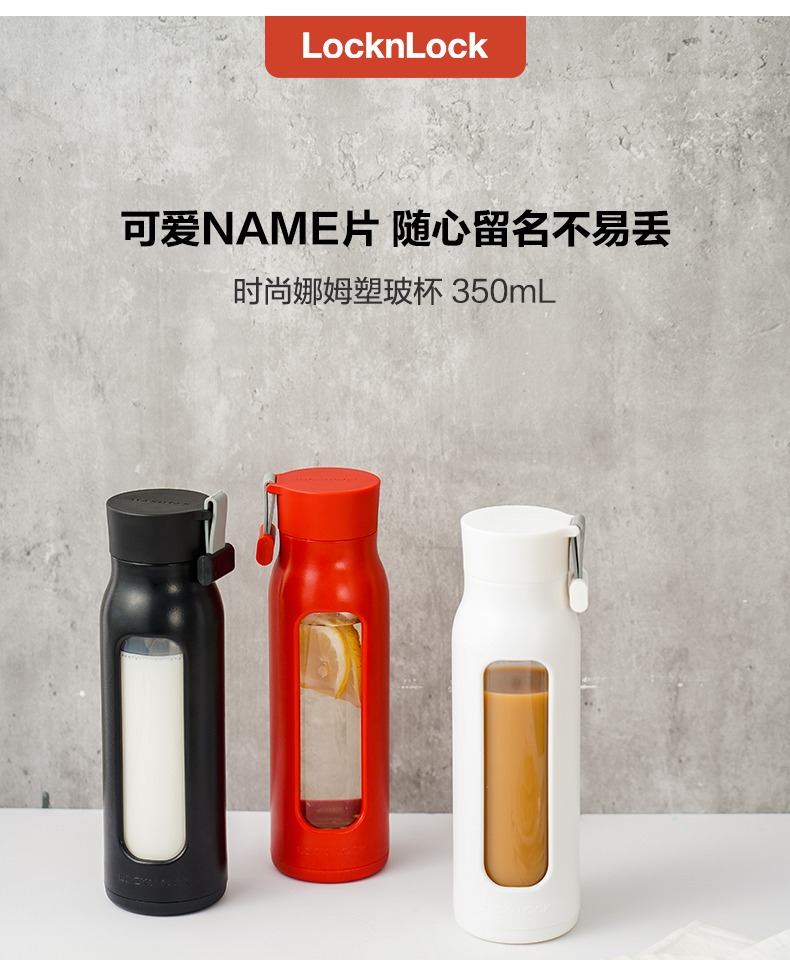 樂扣樂扣 娜姆玻璃水杯杯套時尚便攜情侶男女 350ml LLG651