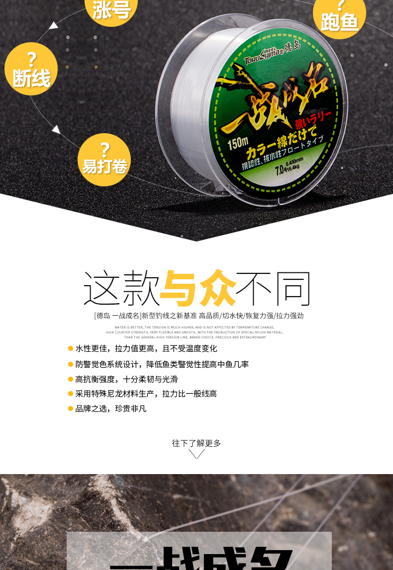 正品德島150米一戰成名魚線主線子線拉力臺釣線磯釣海釣線 尼龍線