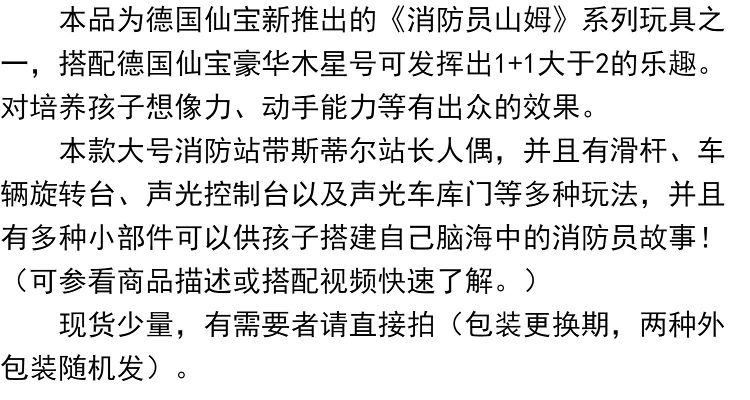 47¥ CZ0001 qlP3Wc7wuJb¥ https://m.tb.cn/h.5iQF2Oa 全球購 正品包郵 消防員山姆玩具 大號平安鎮消防站站長套裝現貨 --------------------- 全球購 正品包郵 消防員山姆玩具 大號平安鎮消防站站長套裝現貨 --------------------- 【原售價】998元 【優惠券】35元 【券后價】963元。
