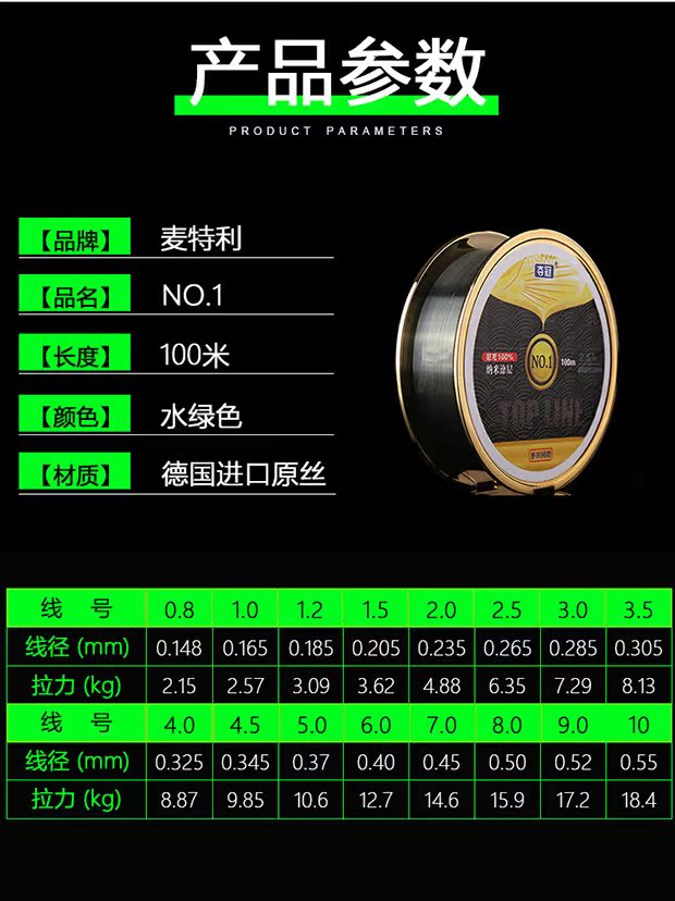 進口麥特利耐磨坊二代50米黑坑子線