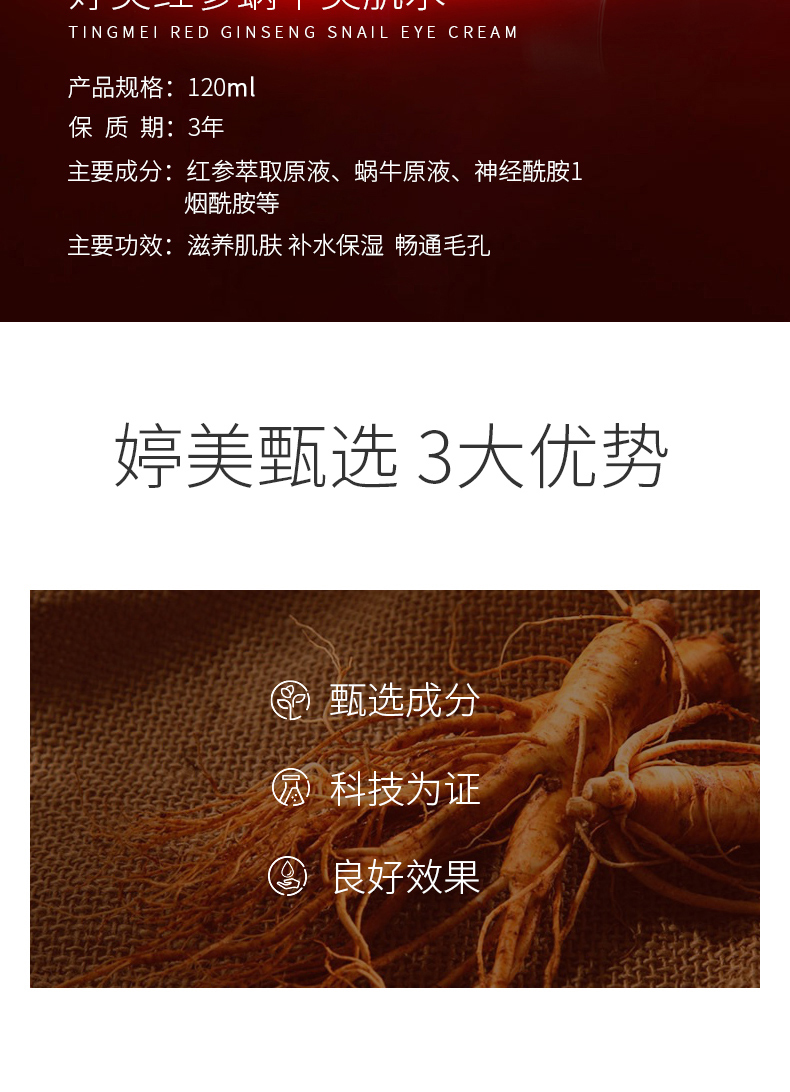 婷美紅參蝸牛原液化妝水補水保濕收縮毛孔男女士護膚品人參爽膚水