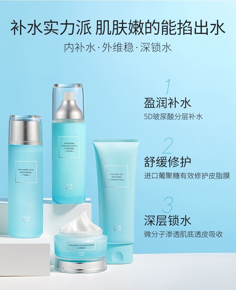 透真玻尿酸護膚品套裝女補水保濕水乳液控油學生化妝品旗艦店正品