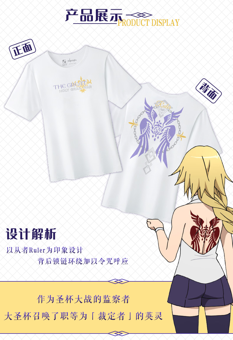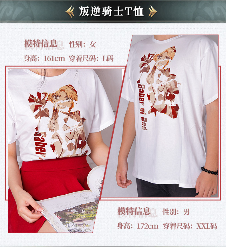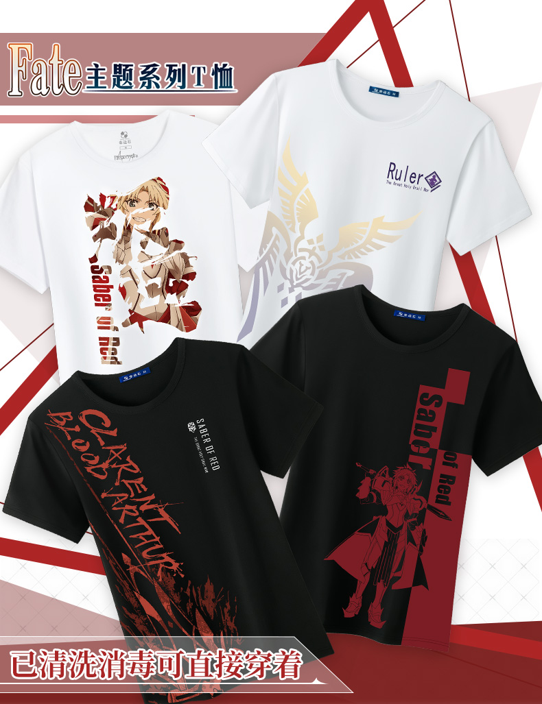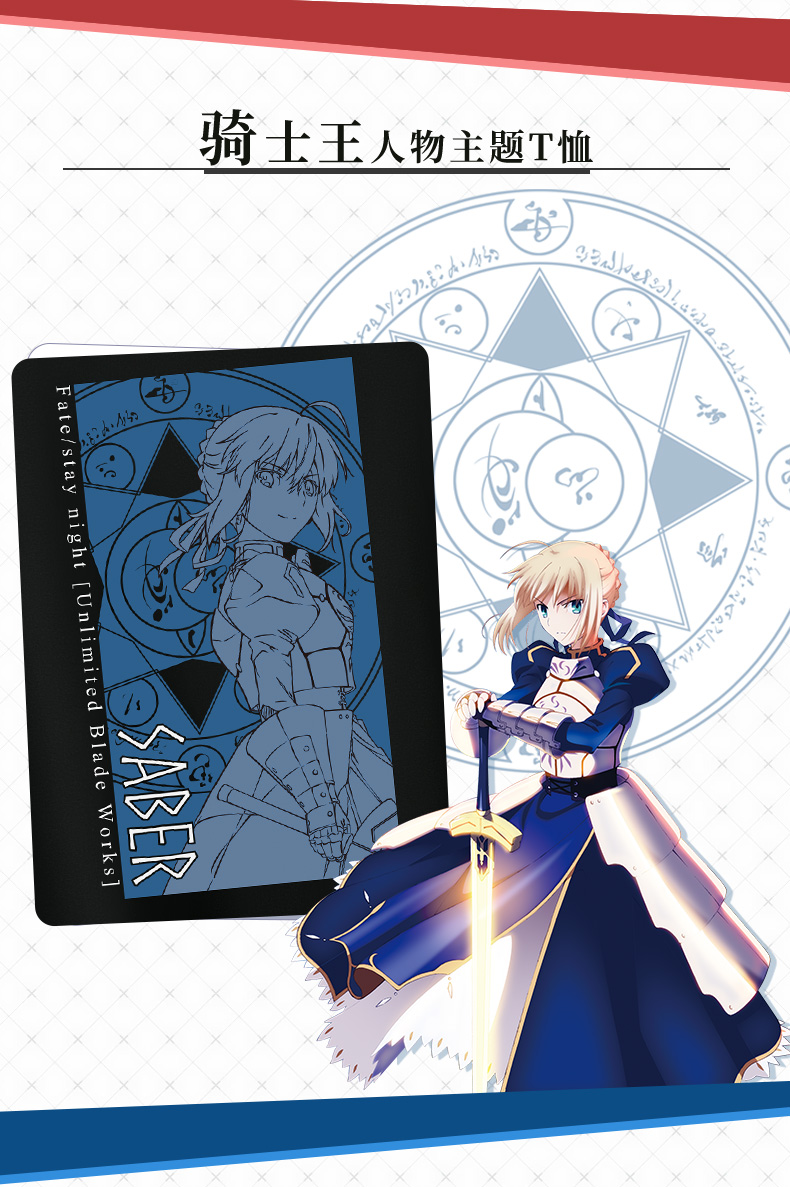 幸運石正版聯盟fate短袖T恤fgo動漫周邊saber遠坂凜莫德雷德衣服