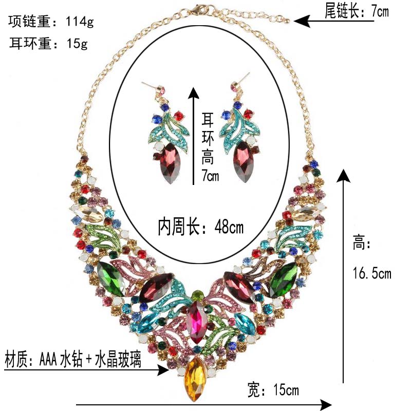 歐美夸張 奢華彩色水晶寶石短鎖骨項鏈耳環套裝女禮服晚宴配飾品