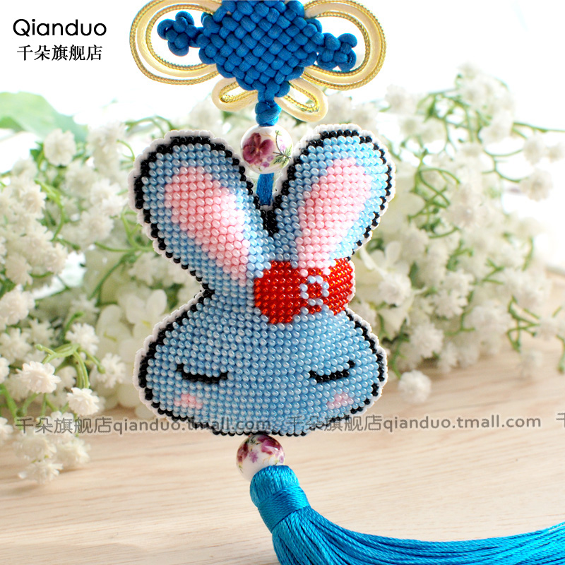 千朵十字繡新版印花藍兔子滿珠繡十字繡汽車車掛雙面鑰匙扣材料包