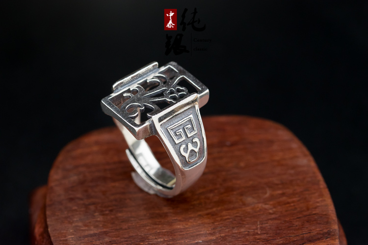 925純銀戒指空托方形豎版戒托活口鑲嵌琥珀蜜蠟綠松銀托銀飾11*17