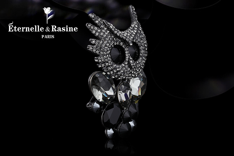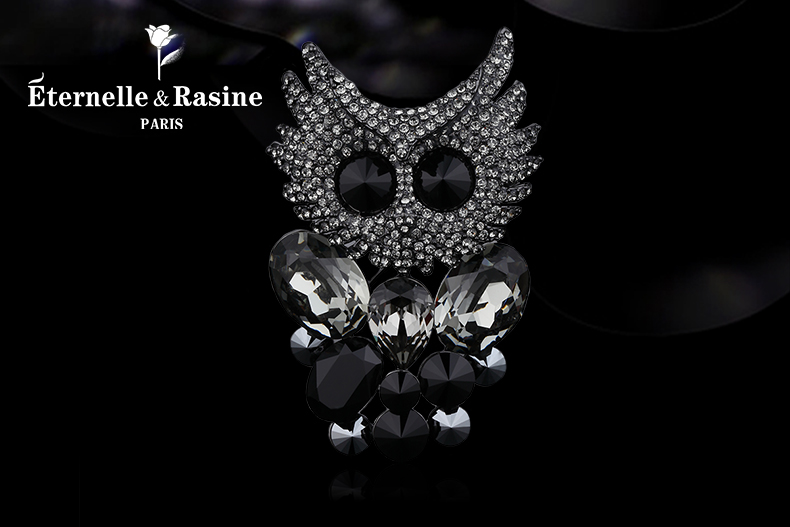 法國Eternelle奧地利水晶時尚胸針 貓頭鷹造型胸花別針絲巾扣
