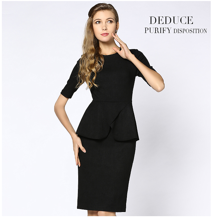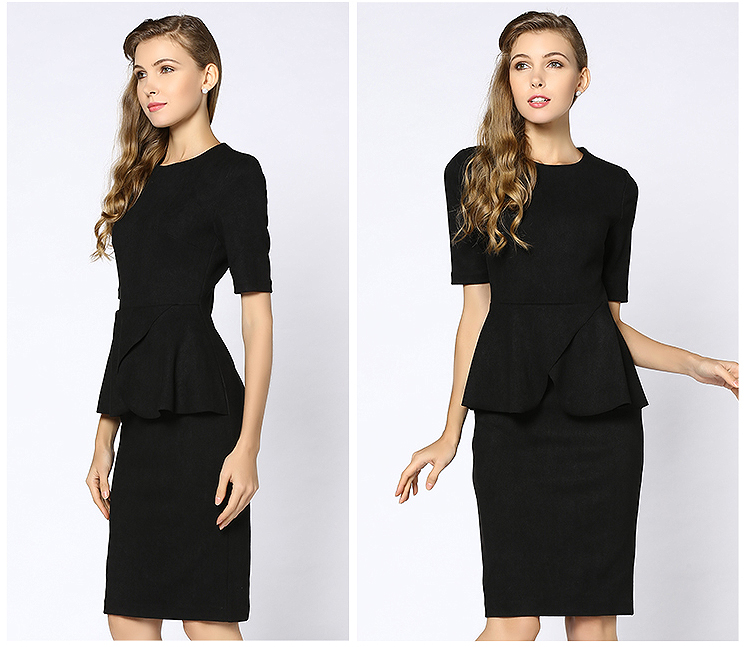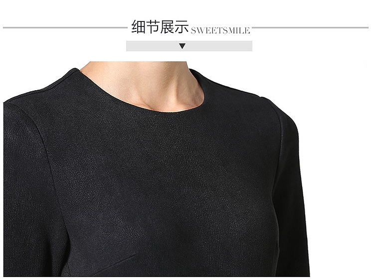 歐美大碼女裝荷葉邊遮肚子修身顯瘦職業麂皮絨連衣裙黑色春秋新款