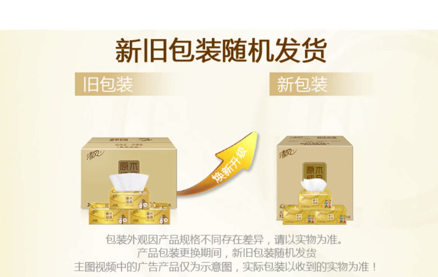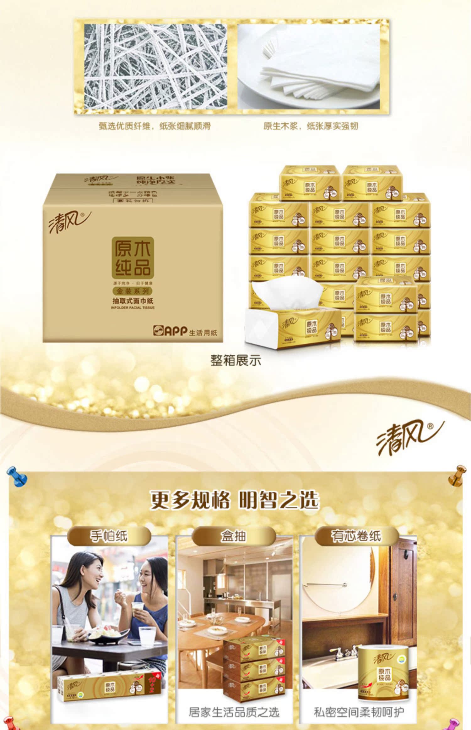 清風抽紙巾24包家用實惠裝餐巾紙抽原木純品抽紙大號包家庭裝紙巾