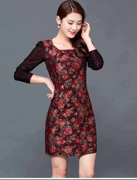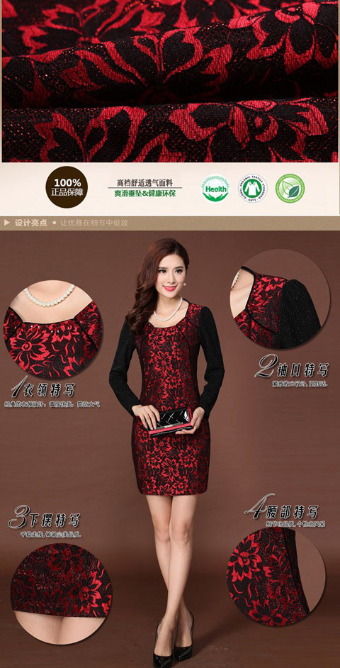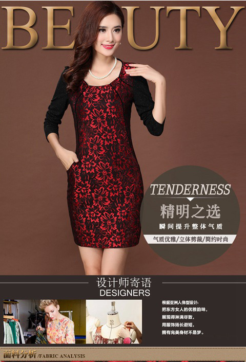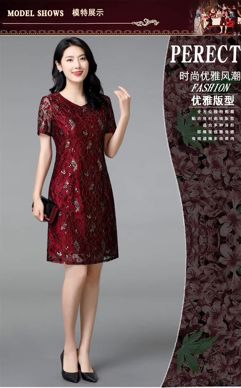 胖mm春秋中年哥弟情高檔蕾絲連衣裙