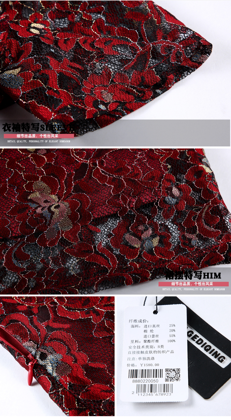中老年春秋加肥加大碼長袖華 哥弟情品牌高檔媽媽旗袍蕾絲連衣裙