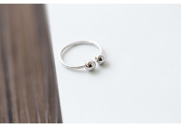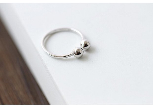 原創簡約設計S925純銀氣質百搭雙圓珠光面戒指女款指環個性開口戒