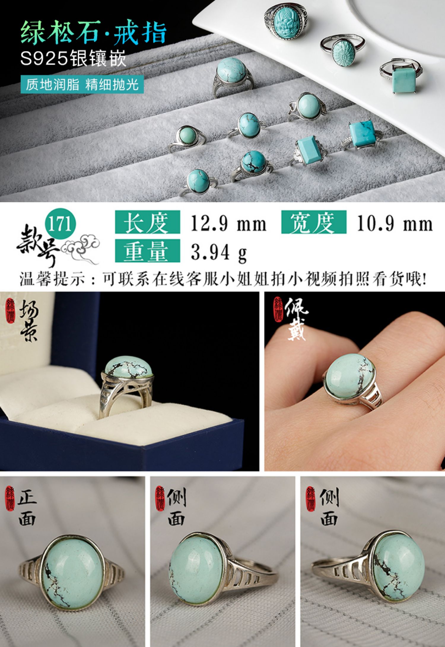 48¥ CZ3457 pCxkdBRW4sc¥ https://m.tb.cn/h.5f0KuBF 天然湖北原礦綠松石戒指女簡約925銀開口指環戒面生日禮物飾品 --------------------- 天然湖北原礦綠松石戒指女簡約925銀開口指環戒面生日禮物飾品 --------------------- 高瓷高藍綠松戒指,925銀鑲嵌,開口戒托 --------------------- 【原售價】278.00元 【現售價】128元。