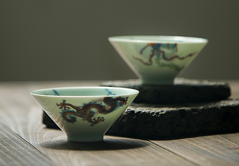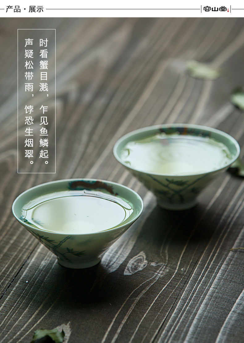 容山堂容窯 粉彩茶杯 陶瓷景德鎮斗彩青花手工斗笠杯品茗杯主人杯