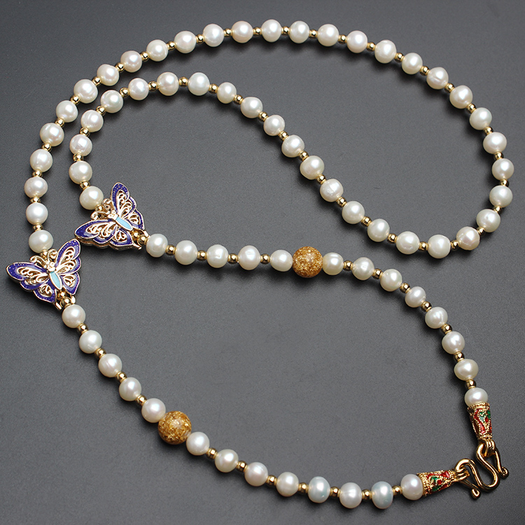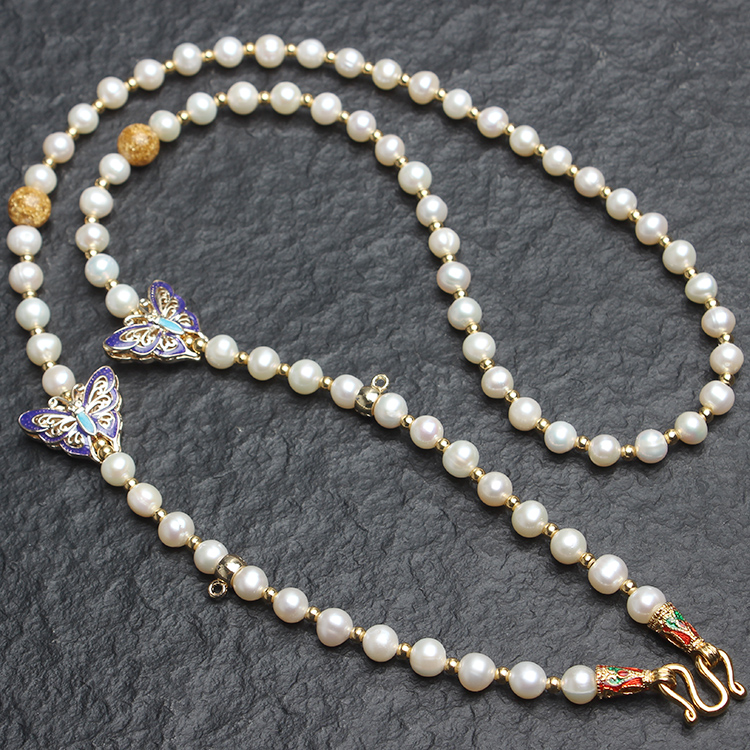 泰國佛牌鏈子 天然珍珠項鏈 蝴蝶毛衣鏈 吊墜掛鏈繩 一雙兩掛三掛