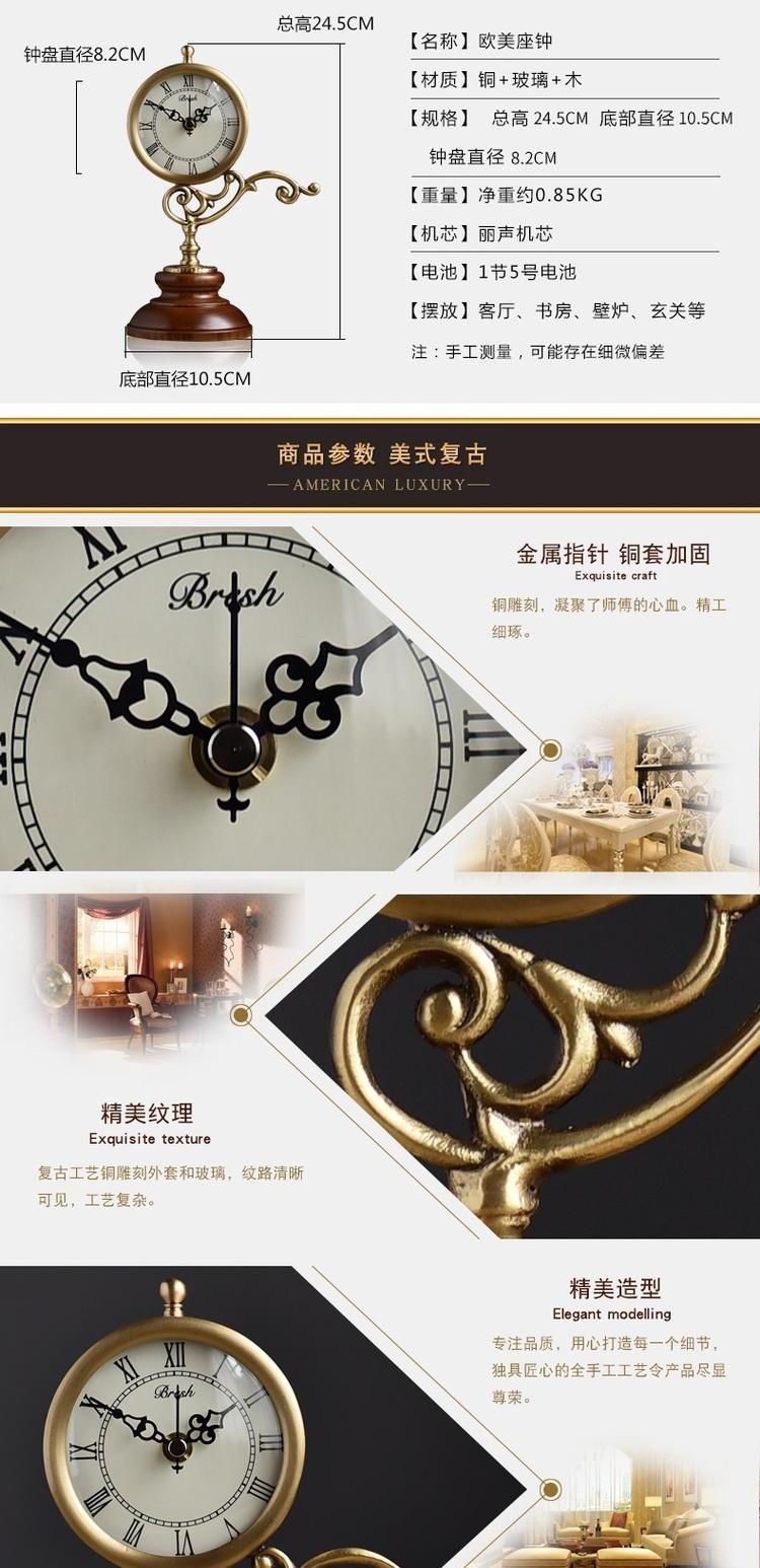 輕奢創意時尚銅座鐘美式客廳銅鐘表