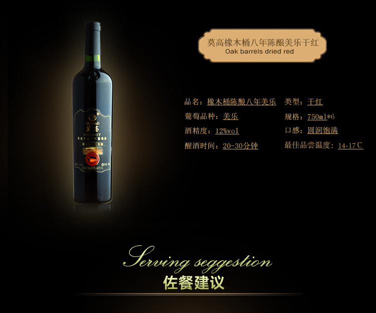 整箱6支裝 莫高美樂干紅葡萄酒 橡木桶八年陳釀 干型紅酒特價包郵